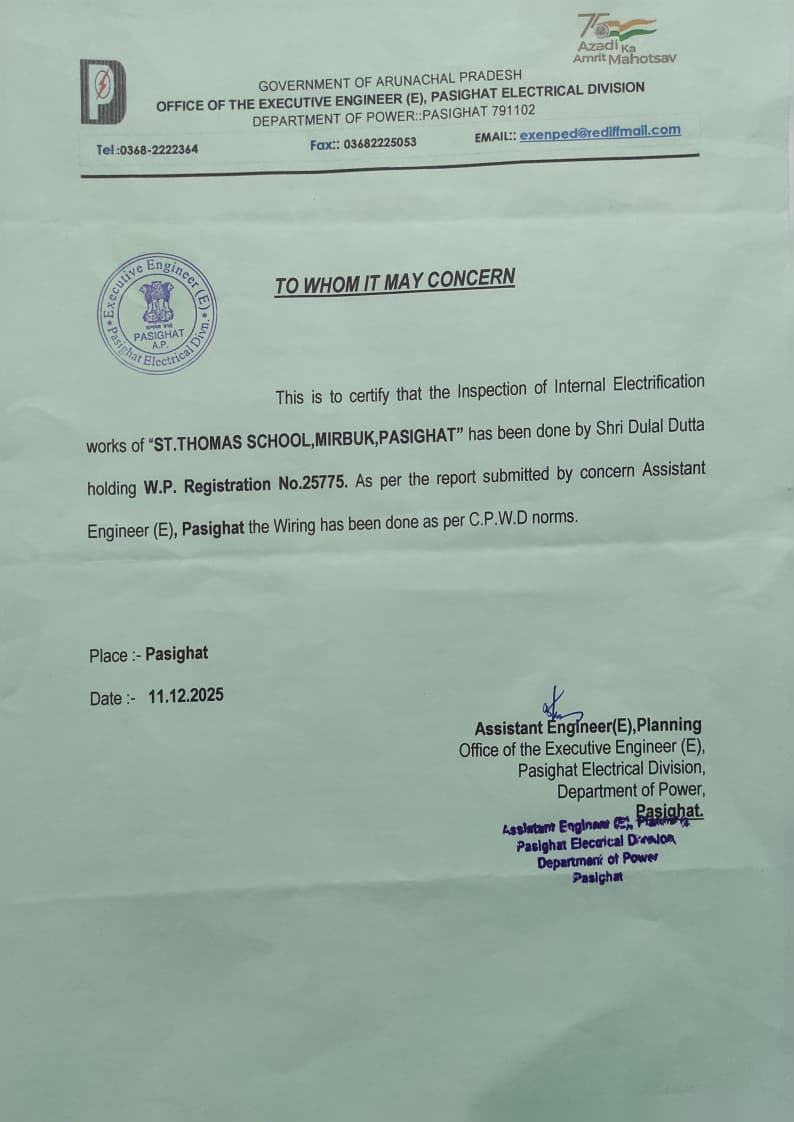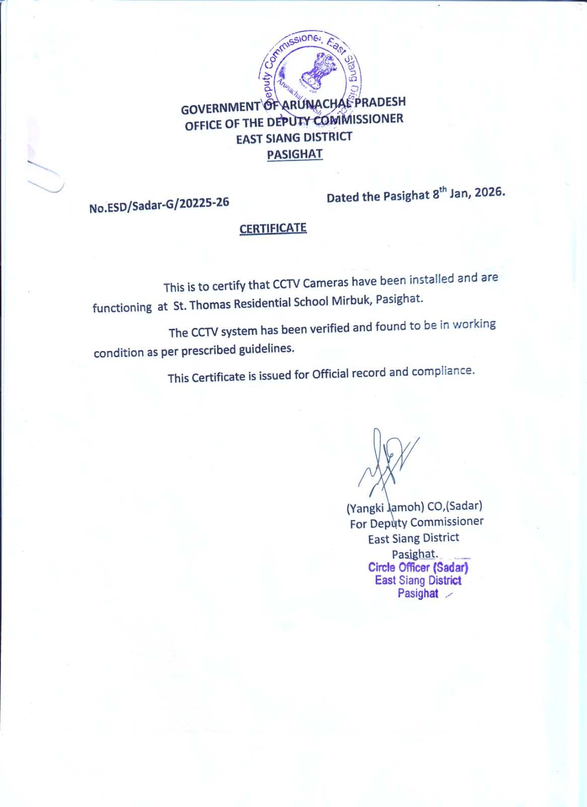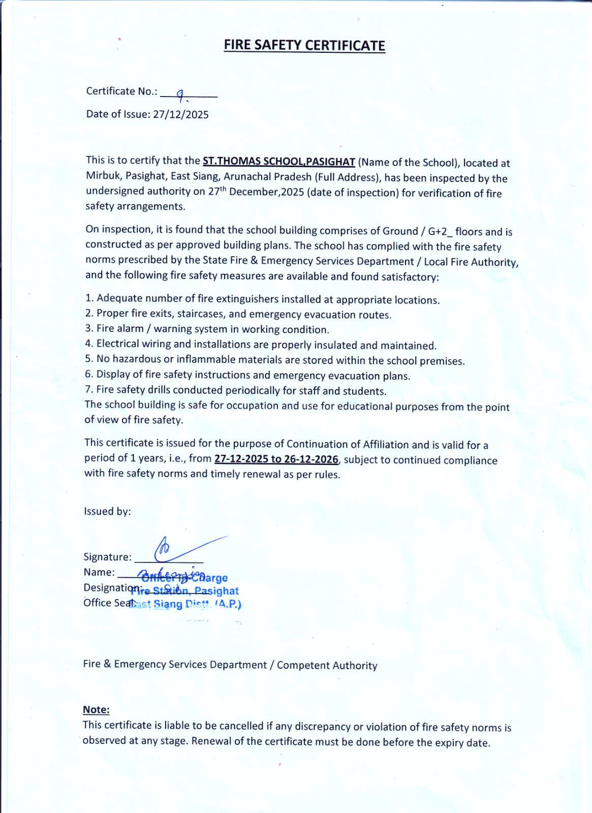 | Certificate of safe Drinking Water & Sanitary conditions 2026 |